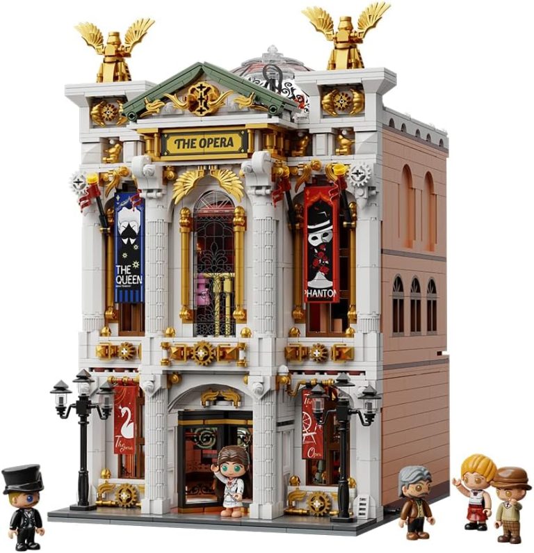 Vintage European Grand Theater Building Set-Modular Model with Crystal Chandelier, Transparent Dome&Expandable Street Scenes Retro Collectible Theater Architecture for Adults &Home Décor Gift