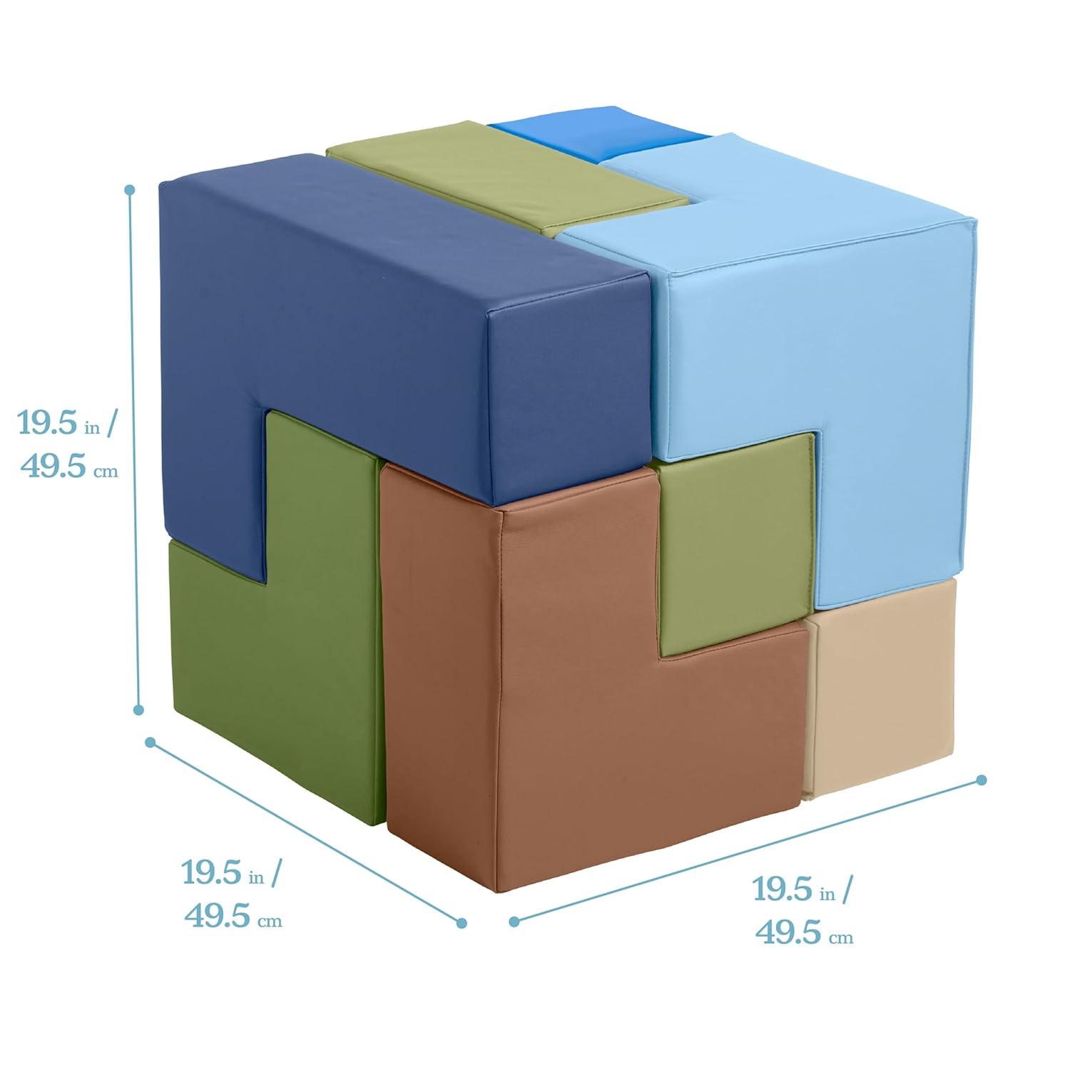 - Product Dimensions: Assembled cube measures 19.5” W x 19.5” D x 19.5” H; soft blocks arrive fully assembled allowing for more time to play; Adult Active Engaged & Direct Supervision Required