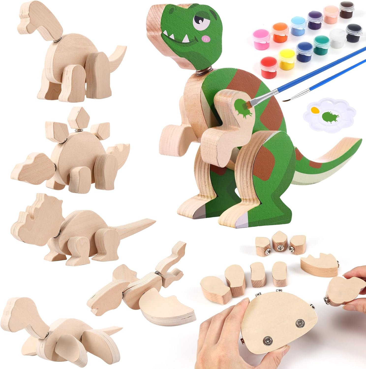 - Great Value Wooden Dinosaur Craft Kit: You will receive 45 pre-cut and pre-sanded wooden blocks for building 6 dinosaurs. Acrylic paints in 12 bright colors. 2 paintbrushes. 1 color card, a paint tray. Kids can use their imagination to paint and decorate these building models to create some cool creatures!