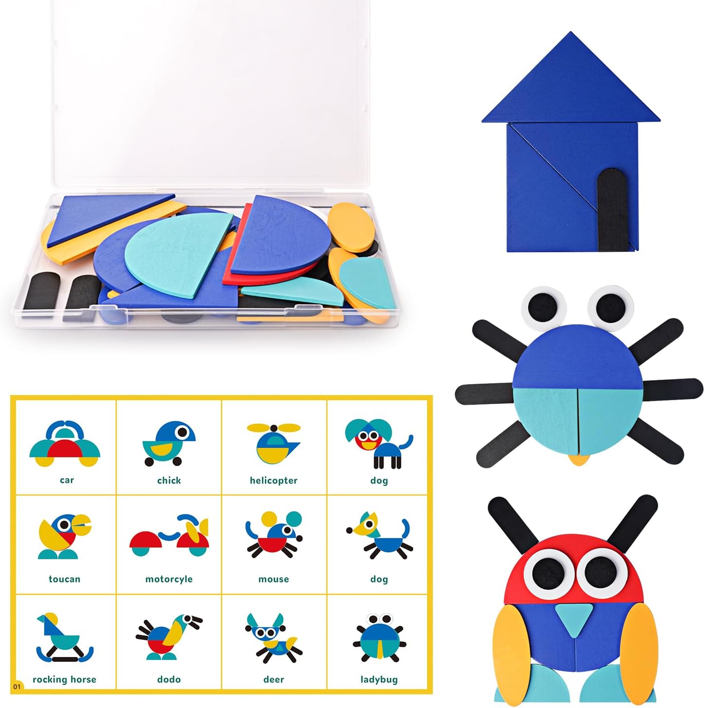 • Contains 36 wooden shape pieces.